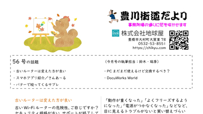 社内報56号(2025年10月発行)をアップしました。今月号では、古いルーターのデメリット […]