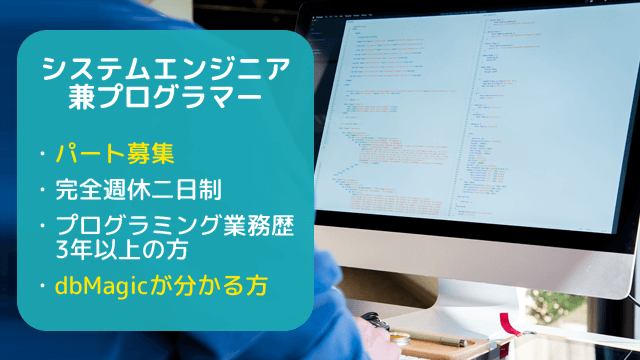SE兼プログラマー(パート・アルバイト)/システム設計・プログラミング・納品・フォローがメインのお仕事
