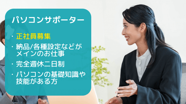 パソコンサポーター(正社員)/納品設置・各種設定・OA機器提案・フォローがメインのお仕事